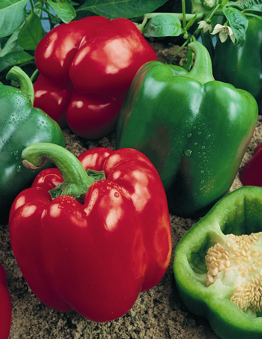 A strong growing, bushy variety which produces high yields of sweet green, bell shaped fruit that turn red on maturity.